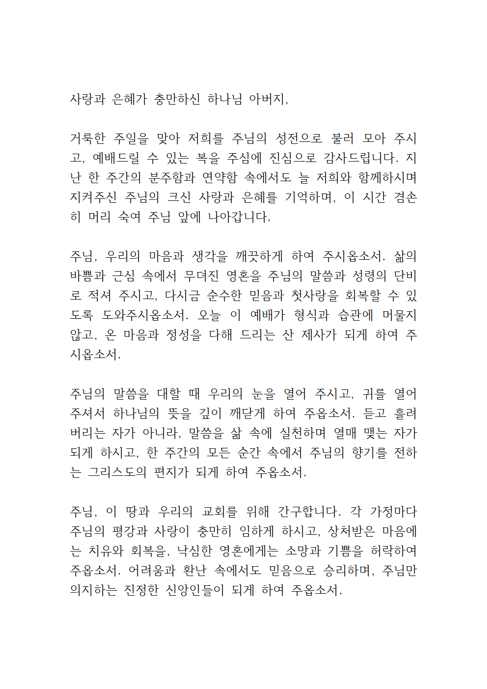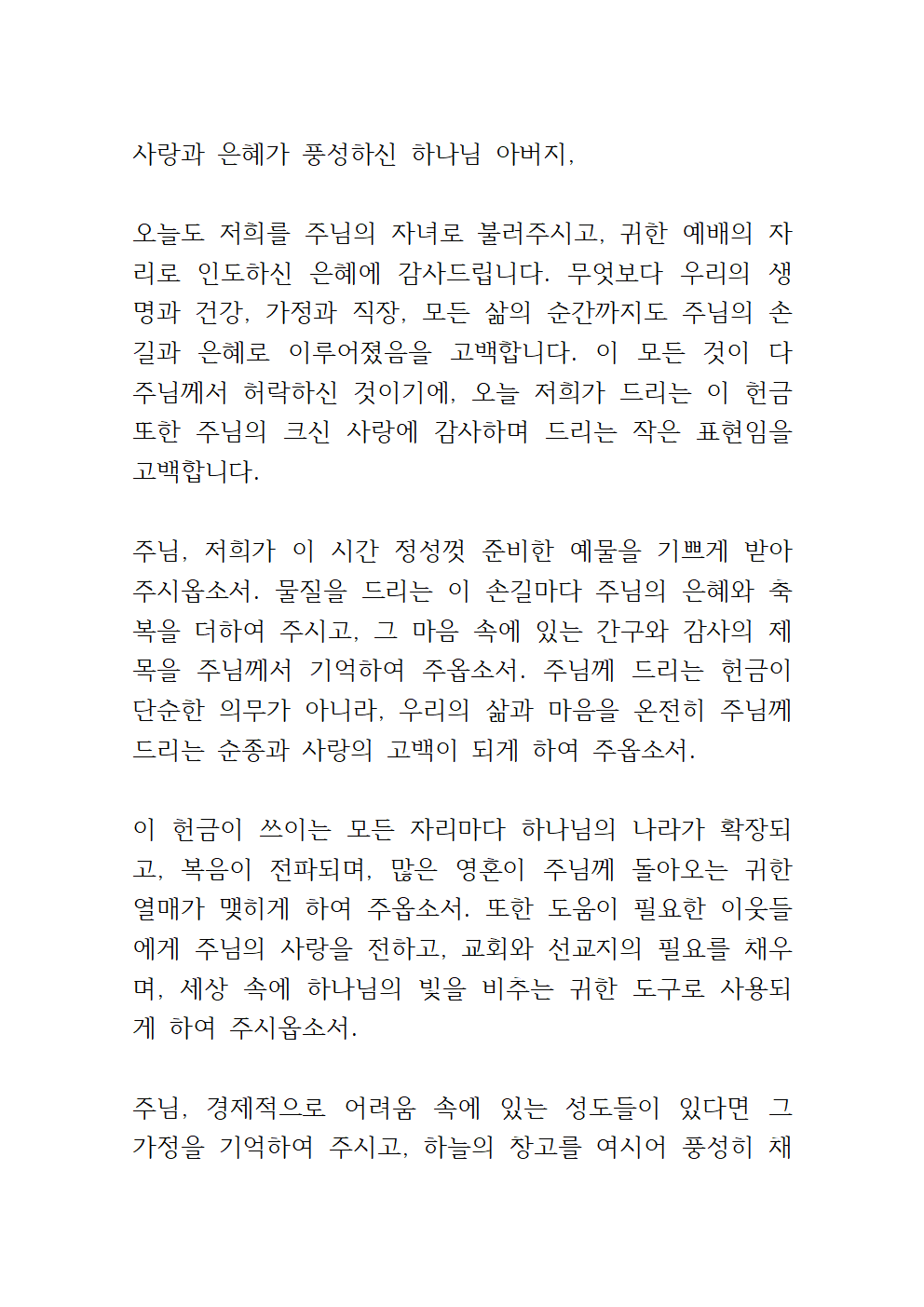이번 글에서는 헌금 기도문, 주일 대표기도문을 안내해 드리겠습니다.